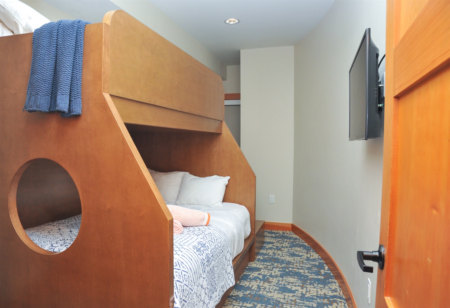 - Bunk beds with full sized bottom bunk and twin sized top bunk (third bedroom – best suited for kids)