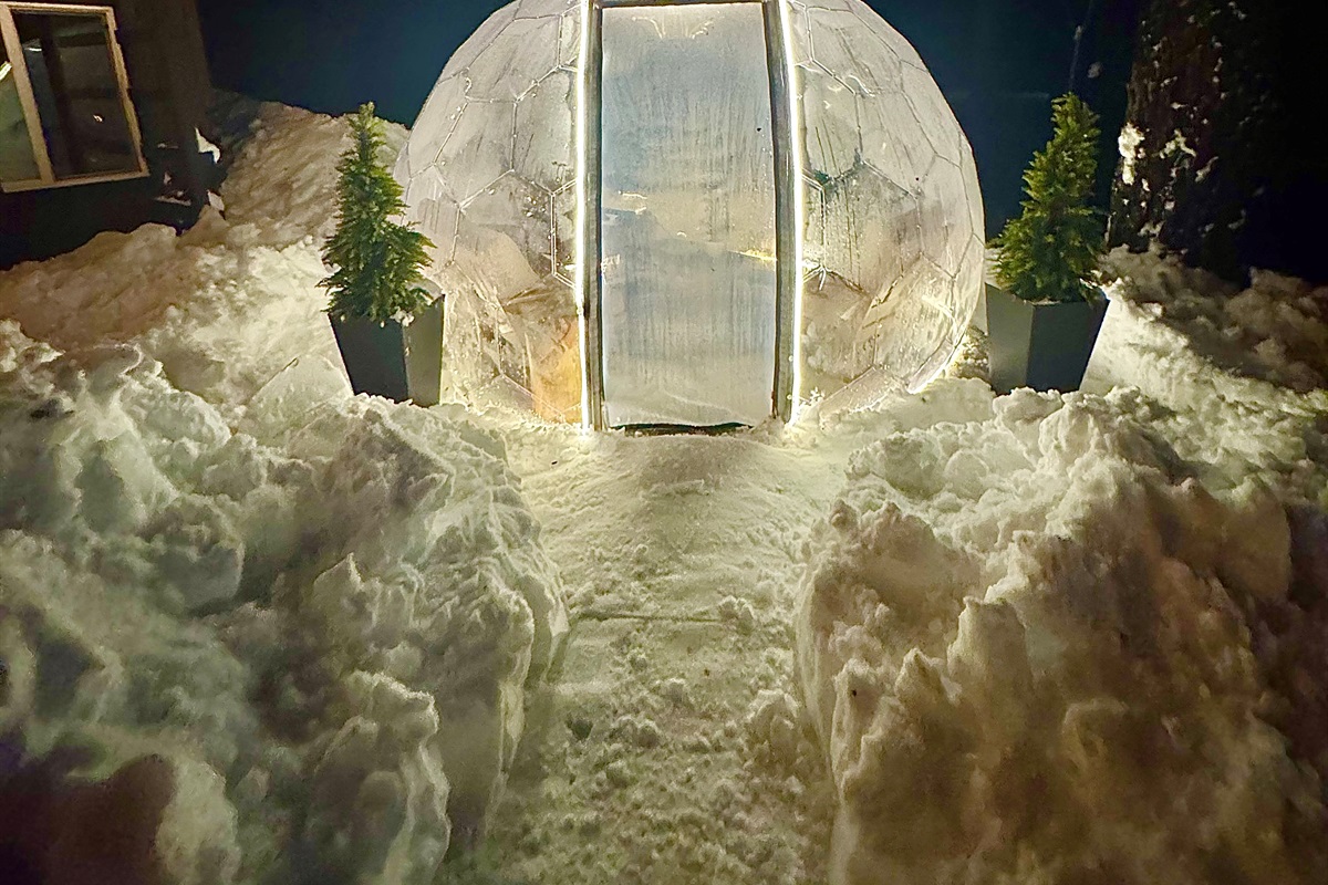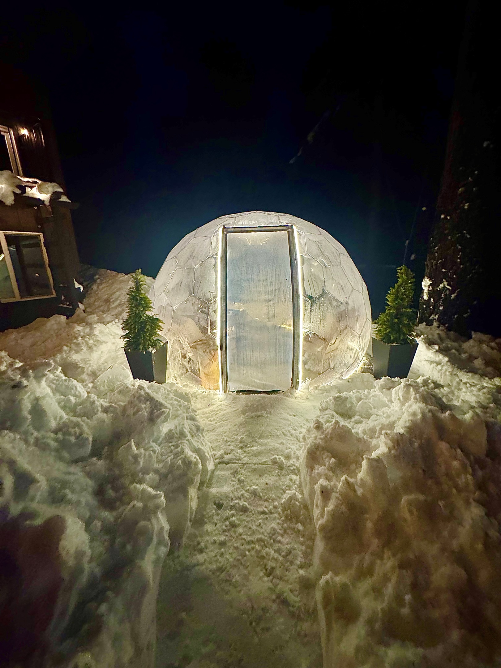 Step into the geo dome for a year-round stargazing experience—completely magical. Picture yourself curled up inside as snow falls quietly all around you. The back deck is perfect for your morning coffee, afternoon picnic lunches, and evening happy hours while soaking in the crisp mountain air.